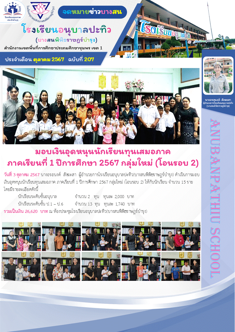 มอบเงินอุดหนุนนักเรียนทุนเสมอภาค กลุ่มใหม่ 1/2567 รอบที่ 2