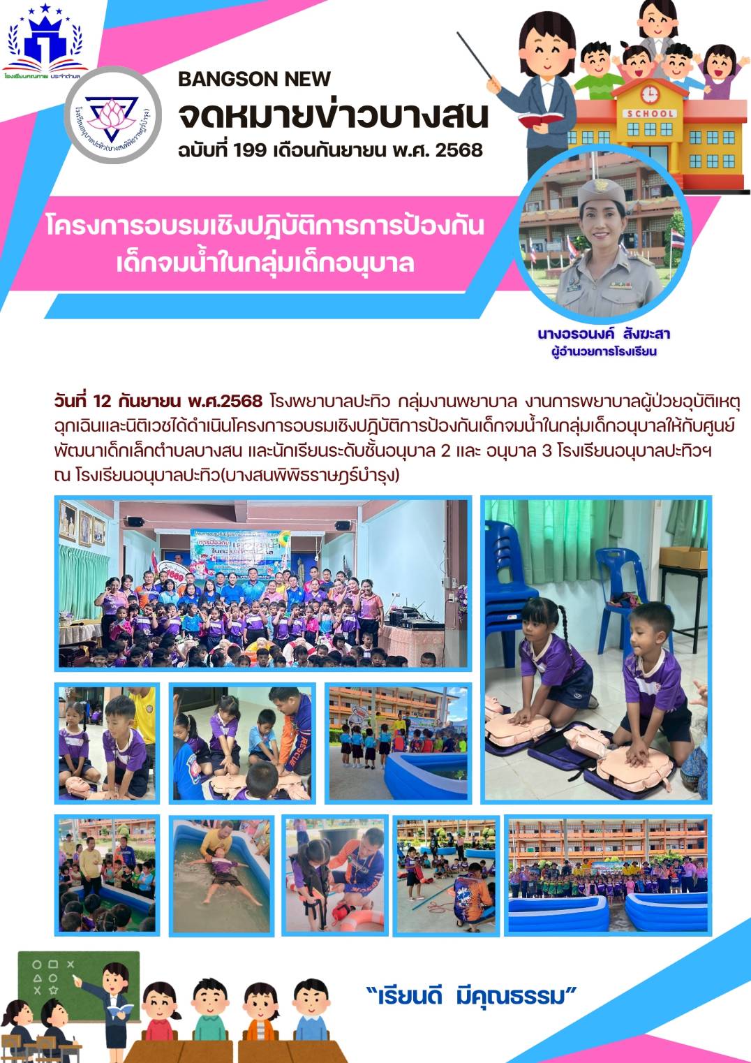 โครงการอบรมเชิงปฏิบัติการการป้องกัน เด็กจมน้ำในกลุ่มเด็กอนุบาล