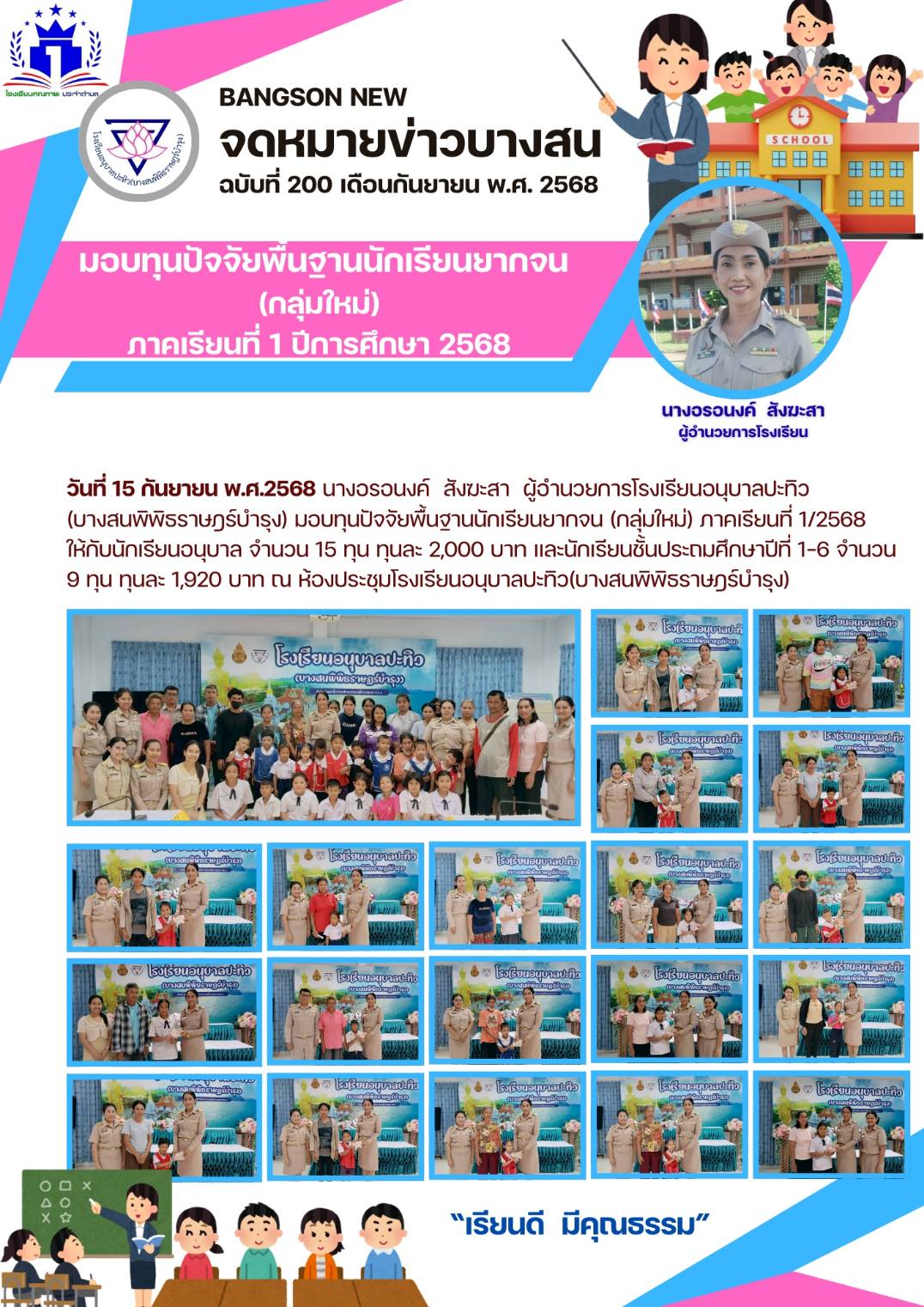 มอบทุนปัจจัยพื้นฐานนักเรียนยากจน (กลุ่มใหม่) ภาคเรียนที่ 1 ปีการศึกษา 2568
