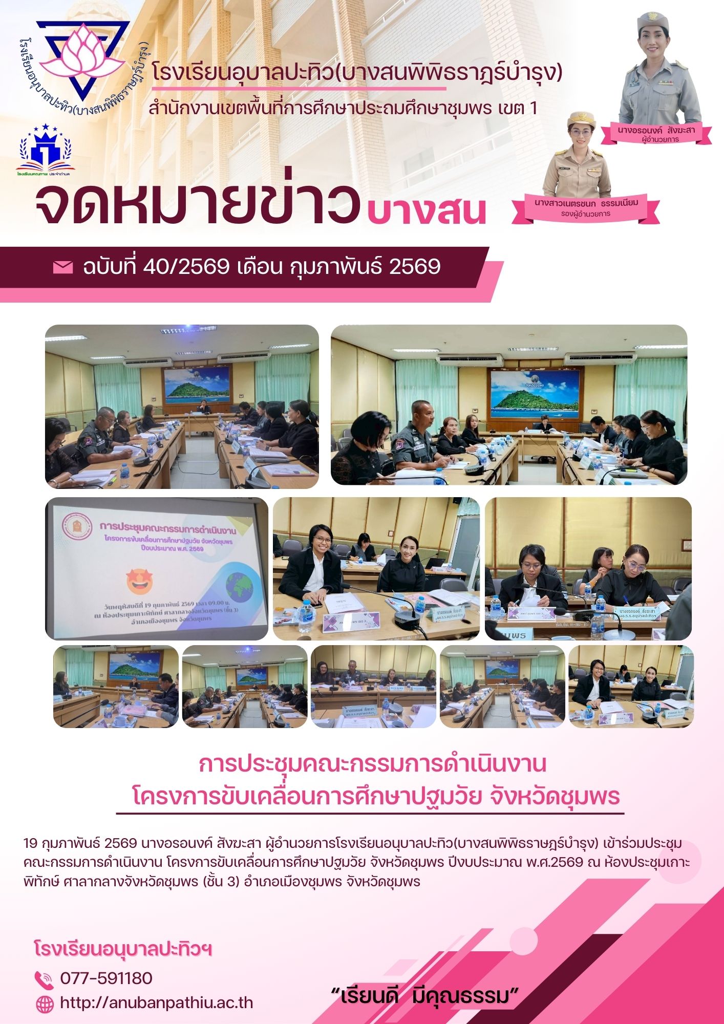 การประชุมคณะกรรมการดำเนินงาน โครงการขับเคลื่อนการศึกษาปฐมวัย จังหวัดชุมพร