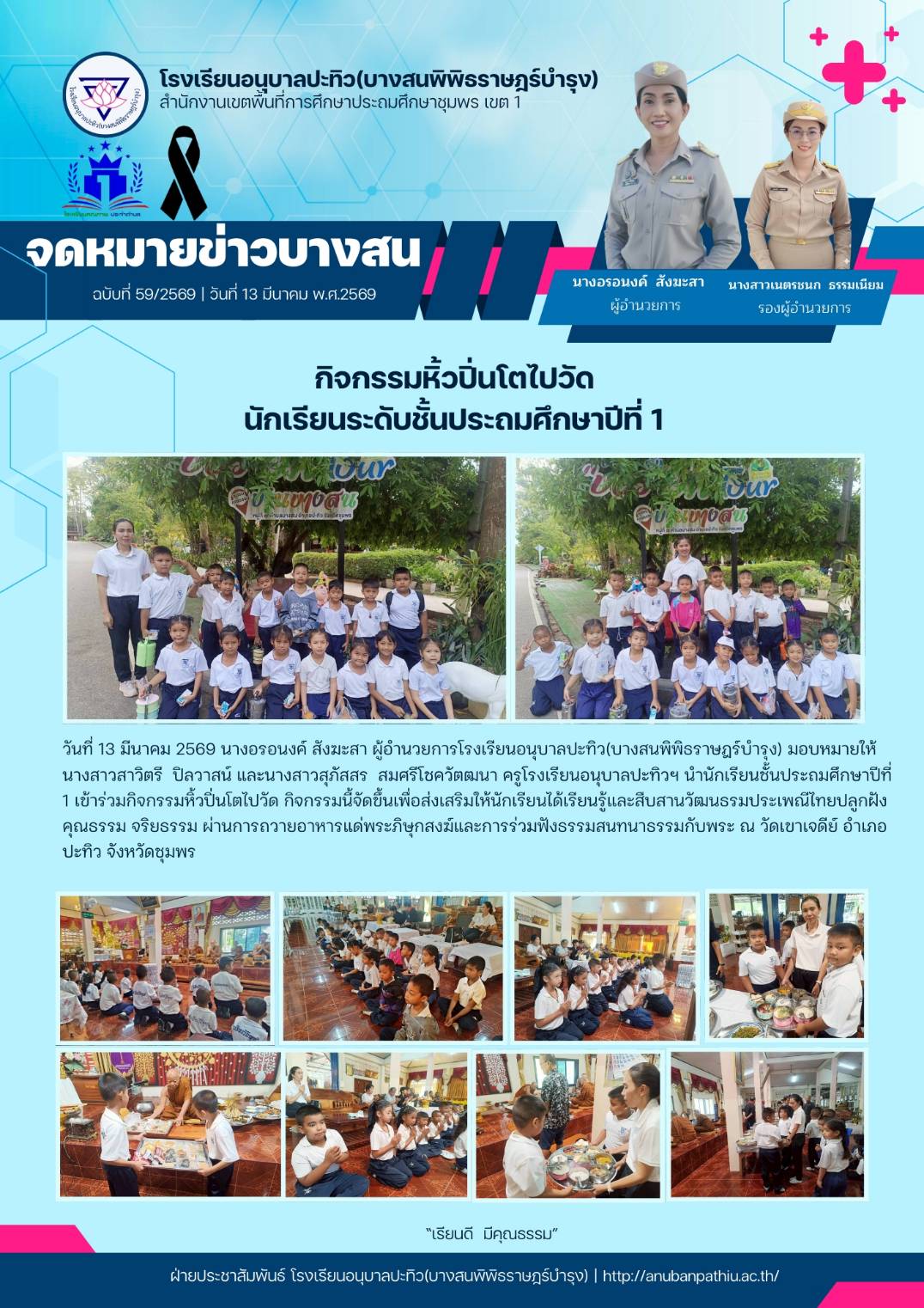 กิจกรรมหิ้วปิ่นโตไปวัด นักเรียนระดับชั้นประถมศึกษาปีที่ 1