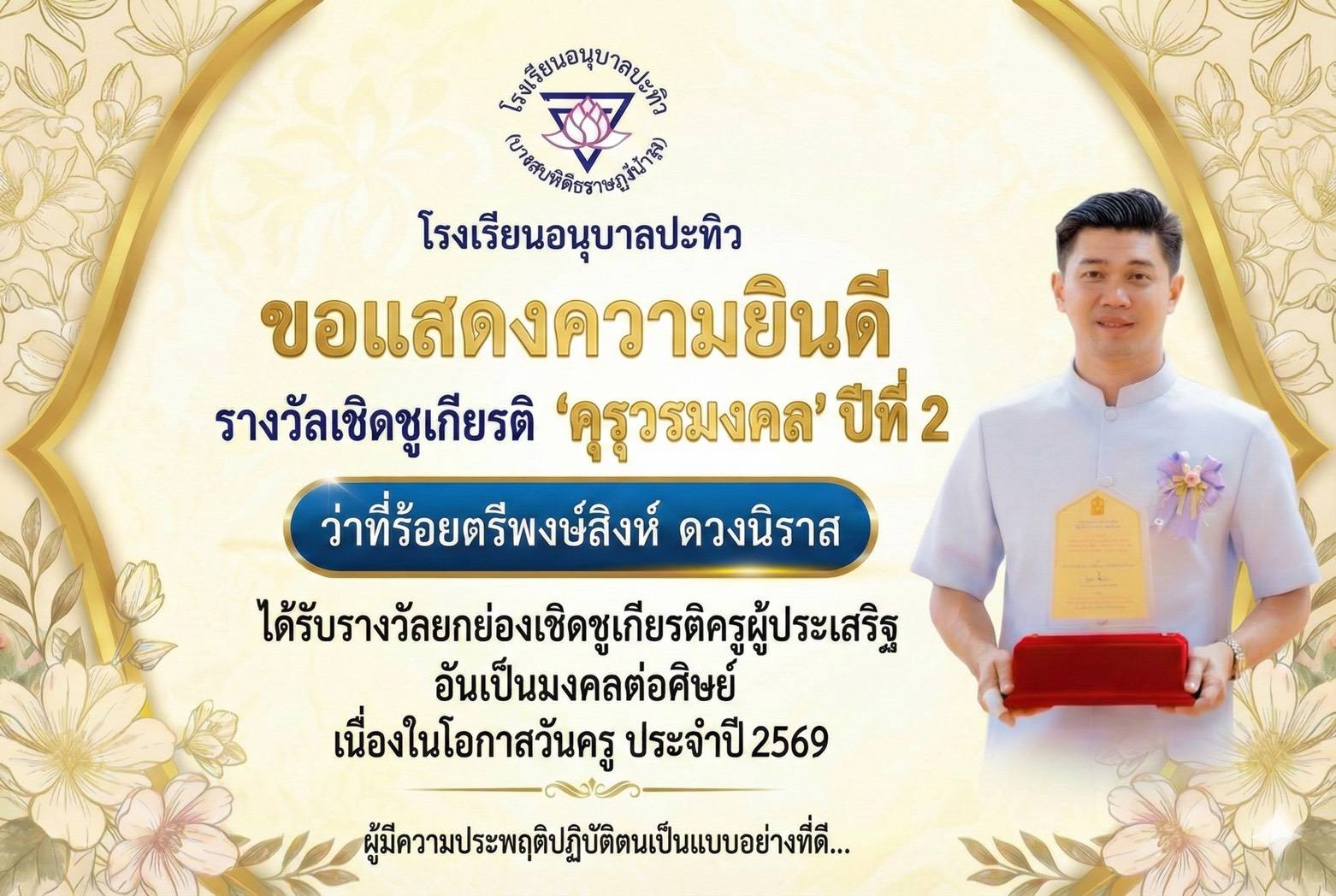 คลิปวีดีโอ/หนังสั้น ระดับประถมศึกษา ได้รับรางวัล ชนะเลิศ การประกวดผลการจัดการความรู้องค์ความรู้ทางทะเล และมหาสมุทร และผลประโยชน์ของชาติทางทะเล ประจำปีงบประมาณ พ.ศ. 2568 จากสำนักงานศึกษาธิการจังหวัดชุมพร